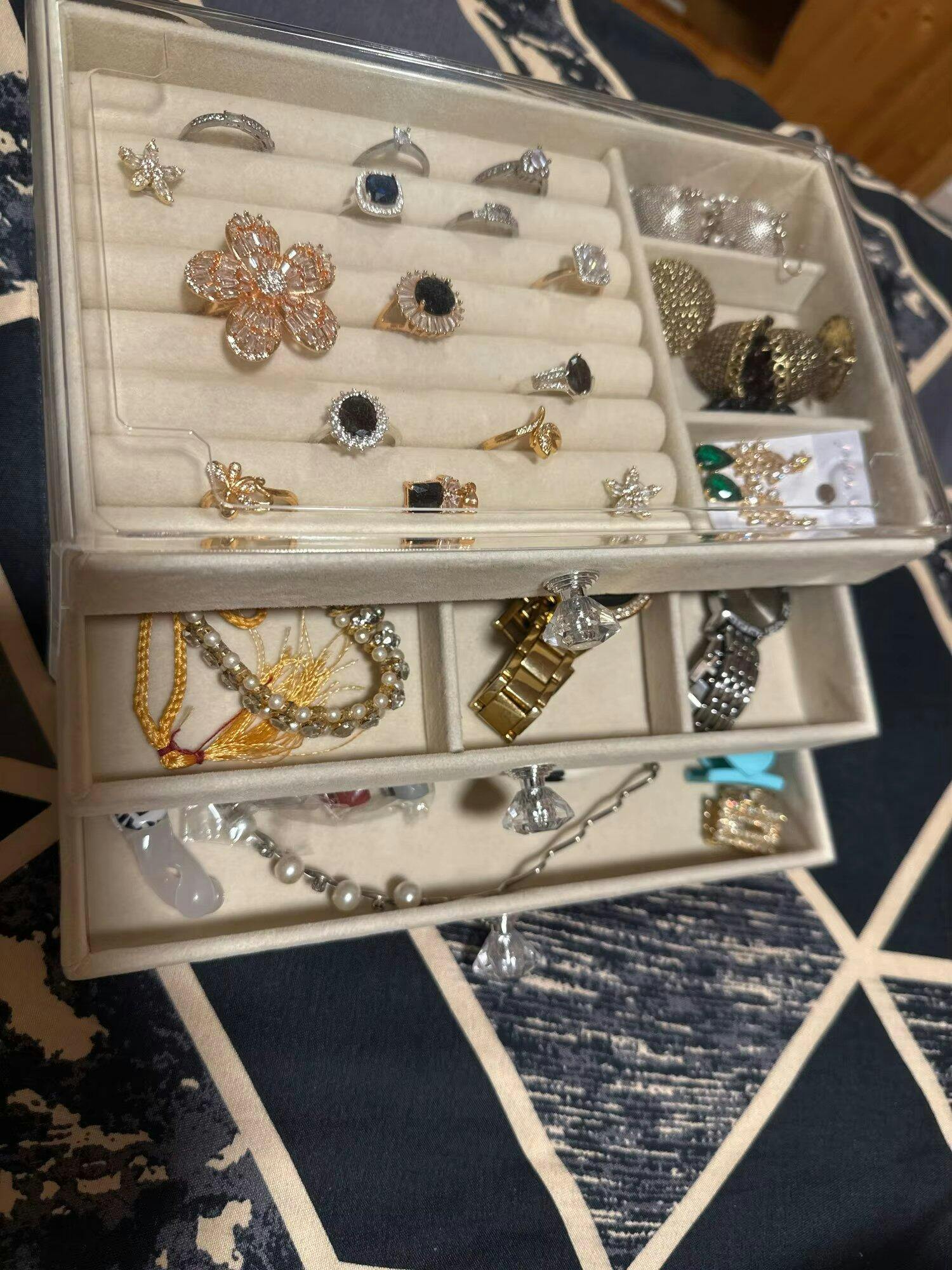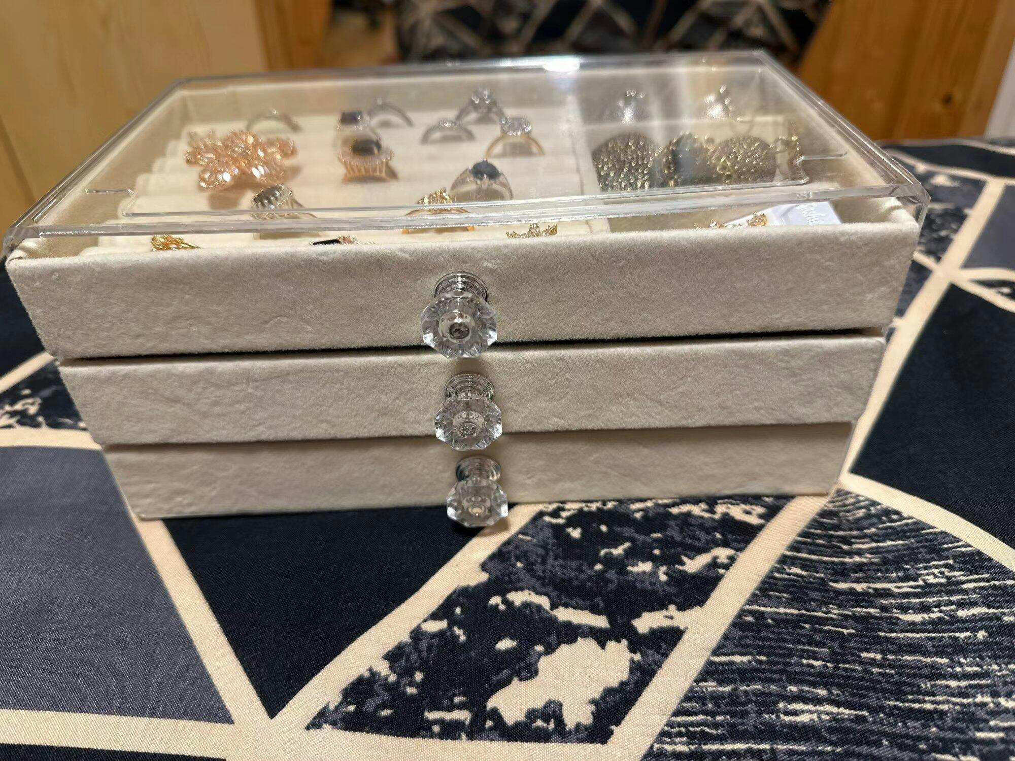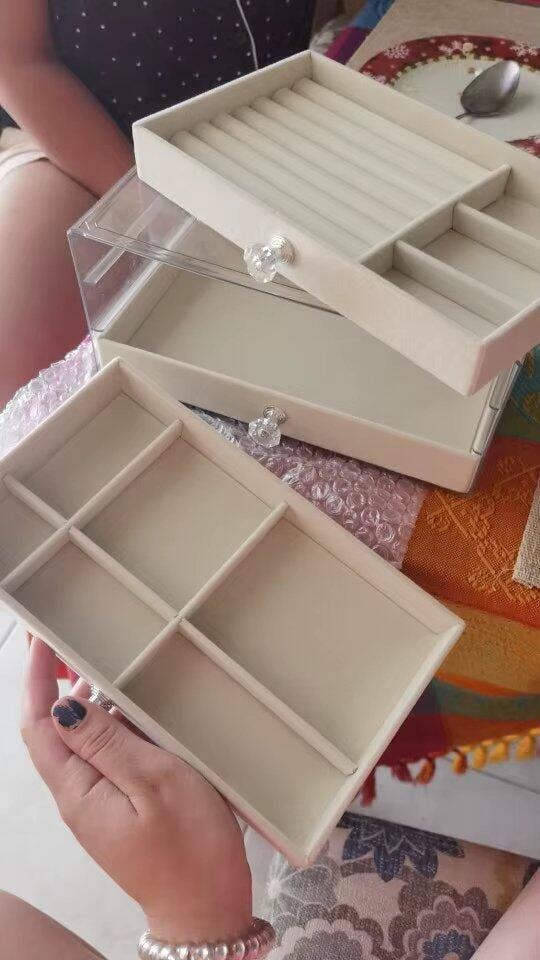 Kafi achi cheez hai price k hisab se. Velvet drawers are soft and clear box ki wajah se dust bhi nahi jati andar. 3 tiers mein mera kafi saman agaya hai.